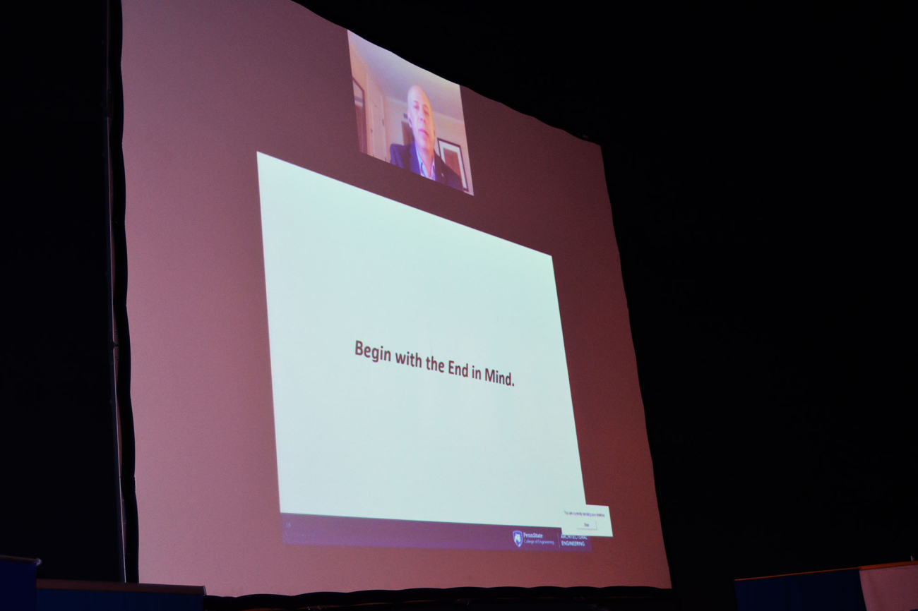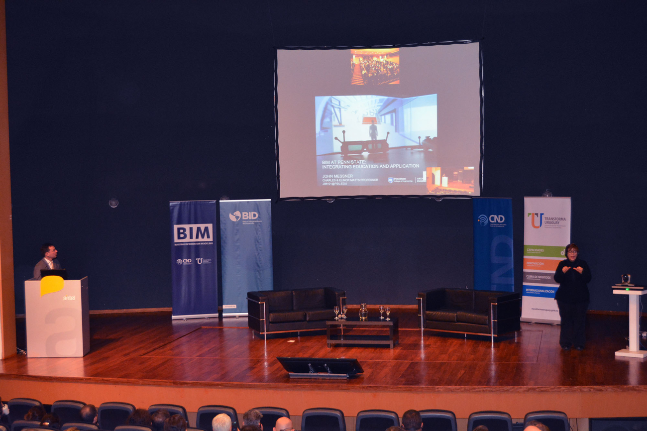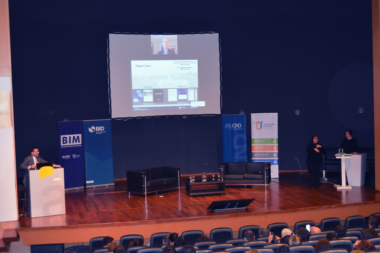 Las dos primeras conferencias fueron transmitidas por videoconferencia desde Estados Unidos y Canadá. La primera estuvo a cargo de John Messner de Penn State quien presentó la experiencia en la adopción de BIM en Penn State y cómo ha participado en los programas de educación. Se especializa en modelado de información de edificios (BIM), investigación de prototipos virtuales y automatización en la construcción. Dirigió varios proyectos que desarrollaron procesos de planificación BIM que se incorporan a la Norma Nacional BIM - EE. UU. Dirigió el grupo de trabajo de Informática de Energía del Edificio en el Consorcio para la Innovación Energética.