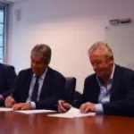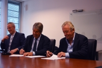 El acuerdo fue firmado por el presidente de CND, Cr. Jorge Perazzo, el vicepresidente, Ec. Germán Benítez, el Intendente de Colonia, Dr. Carlos Moreira Reisch y en representación de la Agencia de Desarrollo Luis Cisneros y Dante Giménez.