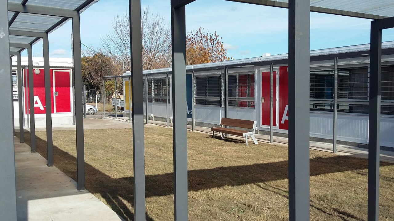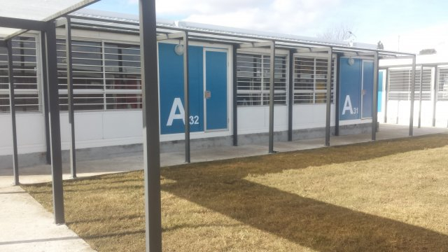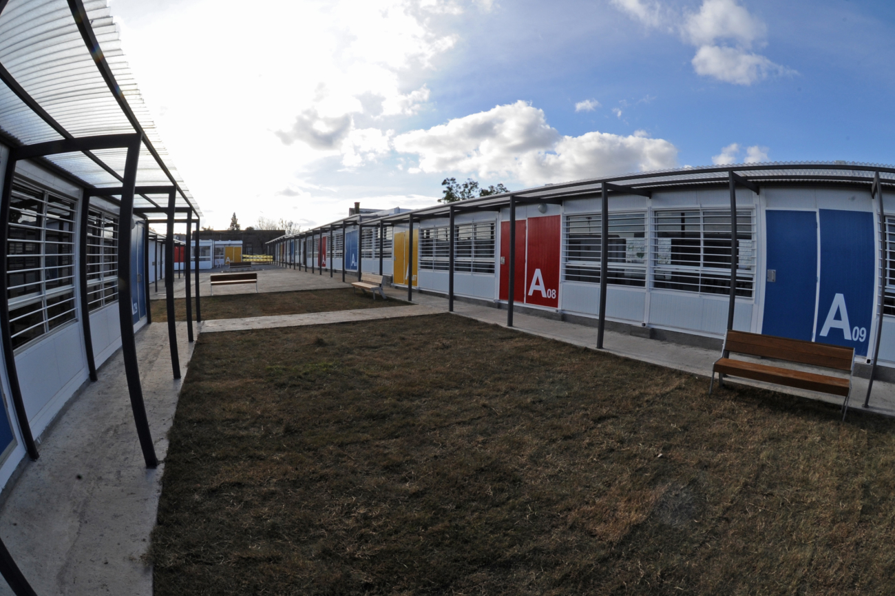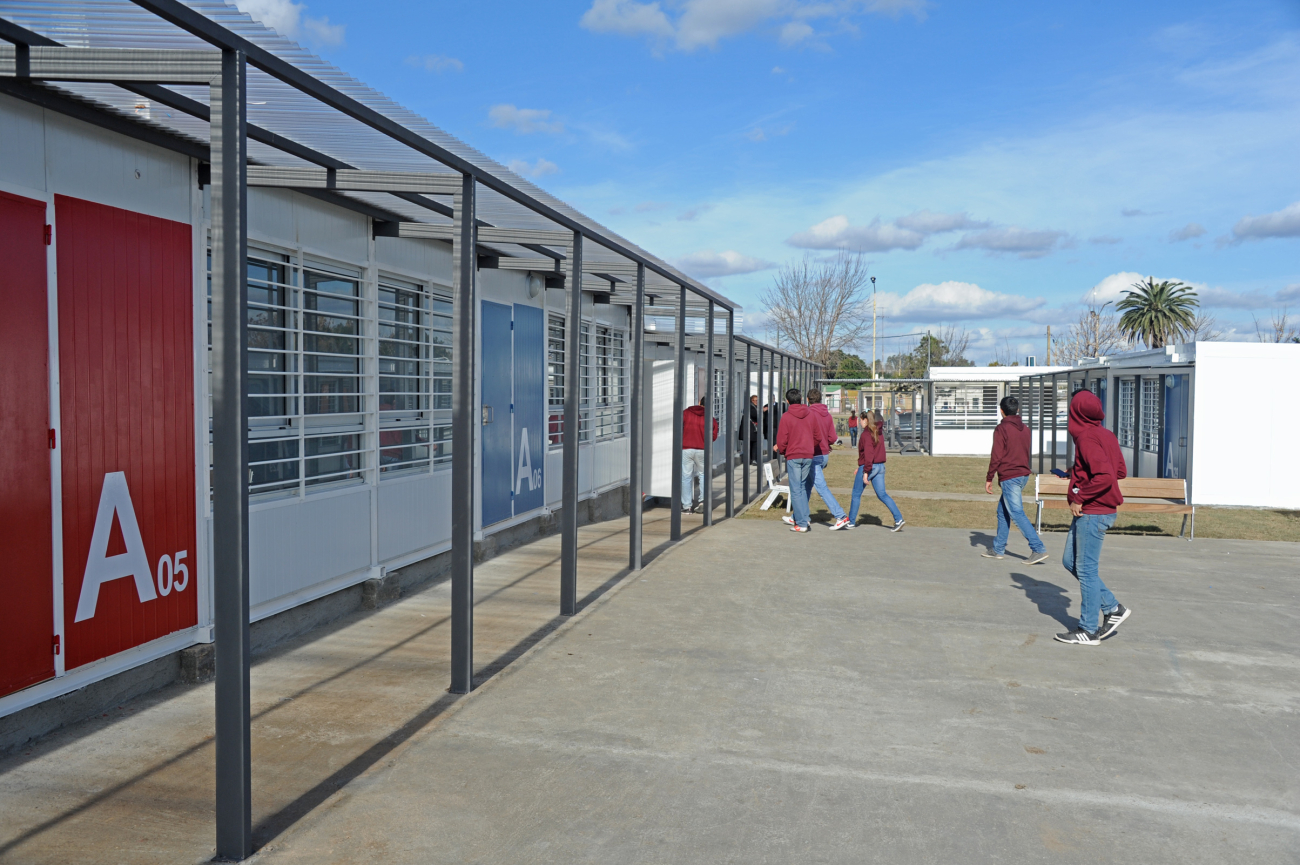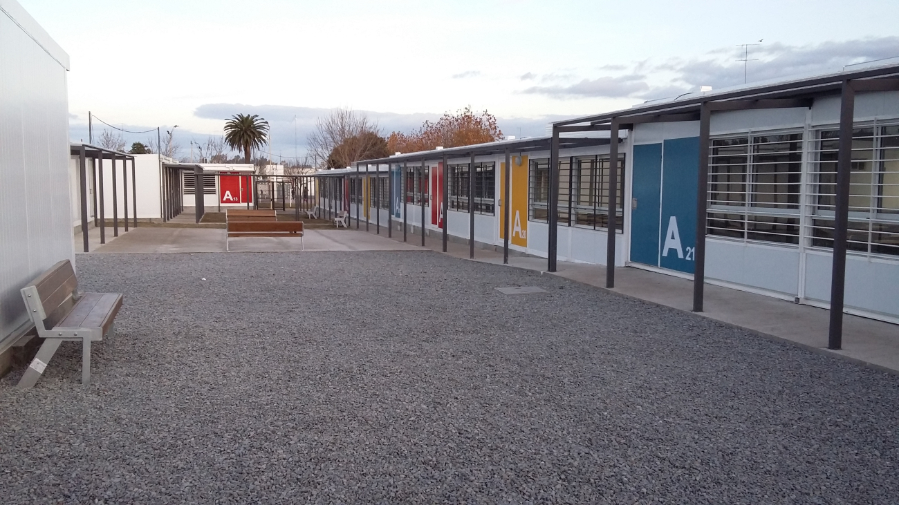 El 29 de abril comenzó la ejecución del conjunto edilicio, que se conforma por 32 aulas prefabricadas y 5 módulos de baños que suman un total de 1.500 m2 de espacios cerrados más 400 m2 de galerías techadas y pavimentos. Dentro de estos espacios se previó también la instalación de locales especializados como laboratorios y áreas administrativas.