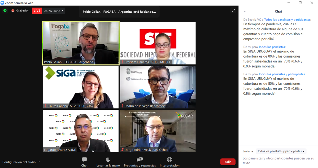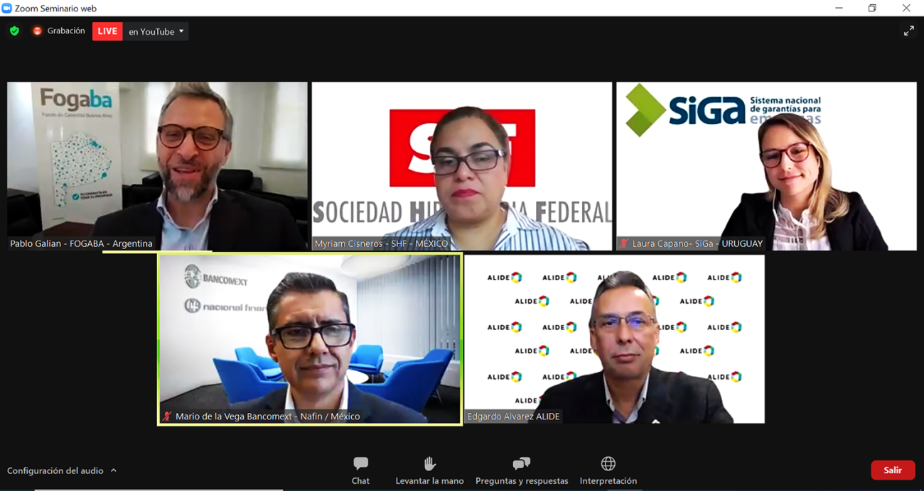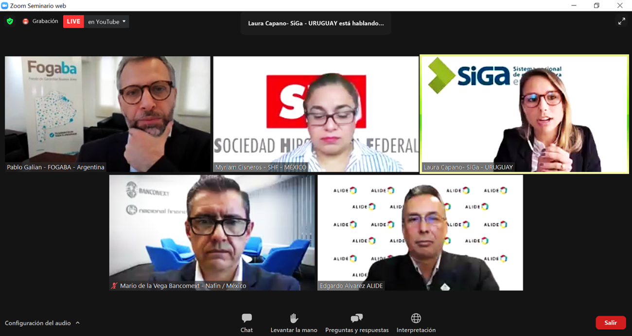 Integrantes de SiGa participaron en el Panel: “Innovaciones y soluciones propuestas por los Sistemas y Entes de Garantías” junto con panelistas de Bancomext, Sociedad Hipotecaria Federal de México y ALIDE.