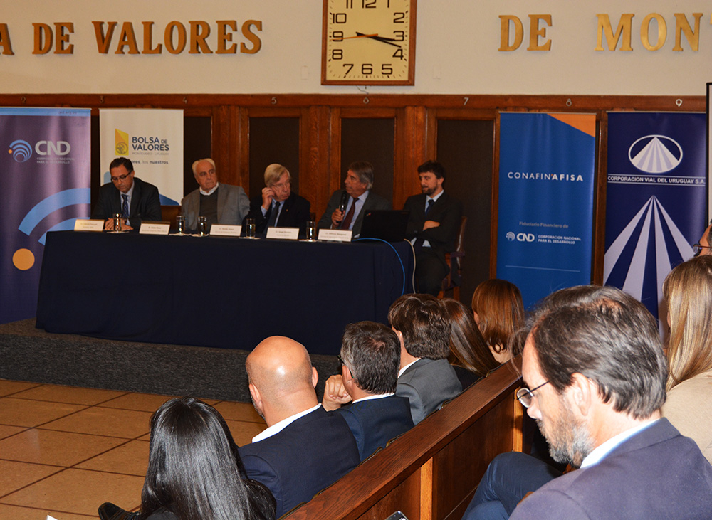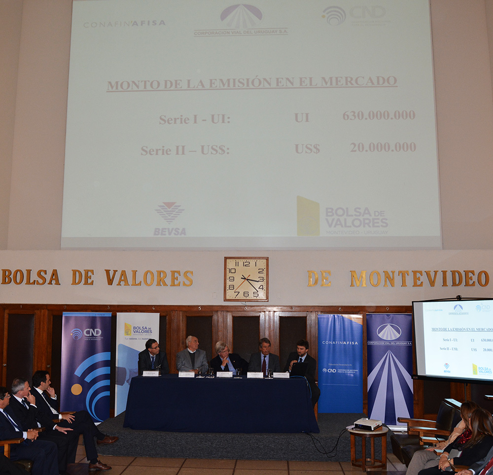 En la actividad hicieron uso de la palabra el secretario de la Bolsa de Valores, Fabricio Pascuali, el gerente de operaciones de CONAFIN AFISA, Cr. Alfonso Margenat, el presidente de CND, Cr. Jorge Perazzo, el ministro de Transporte y Obras Públicas, Víctor Rossi y el ministro de Economía y Finanzas, Cr. Danilo Astori.