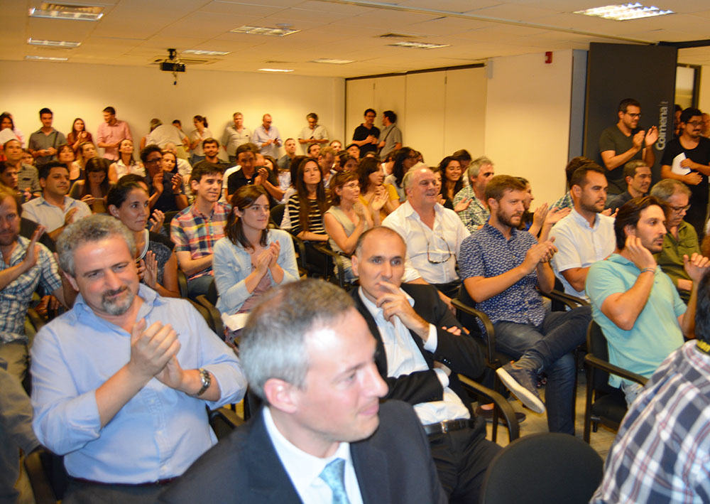 Los ganadores del concurso fueron develados por tres representantes del jurado, Arq. Thomas Sprechmann, Arq. Conrado Pintos y Arq. Gustavo Scheps junto a la escribana de CND, Belén Menezes.