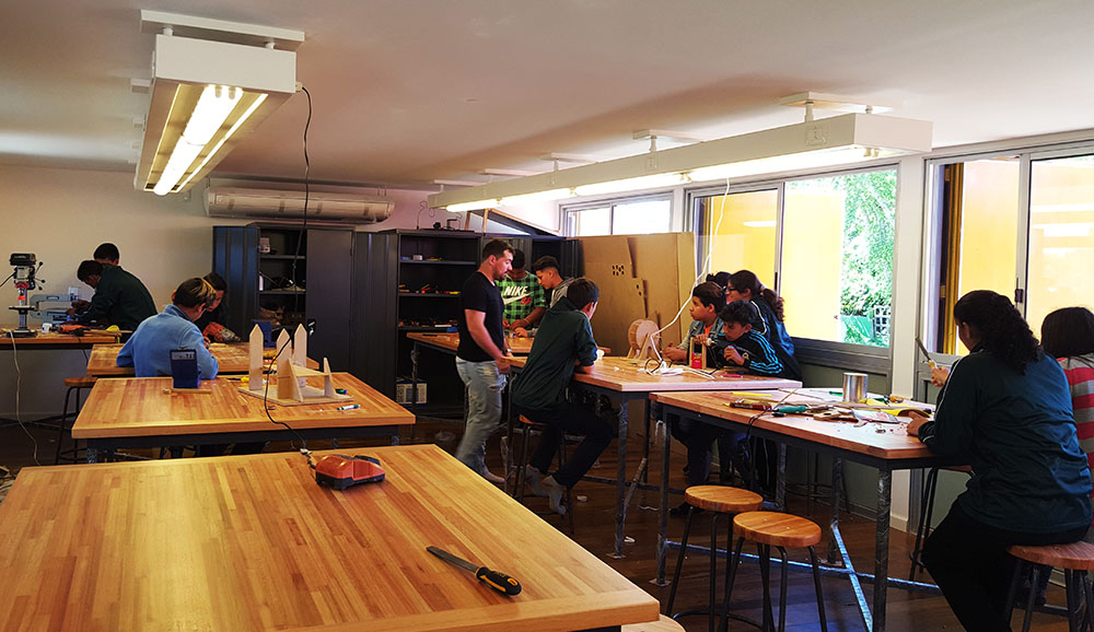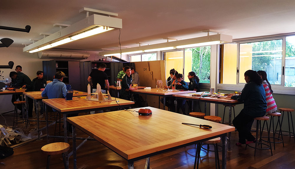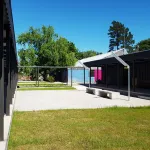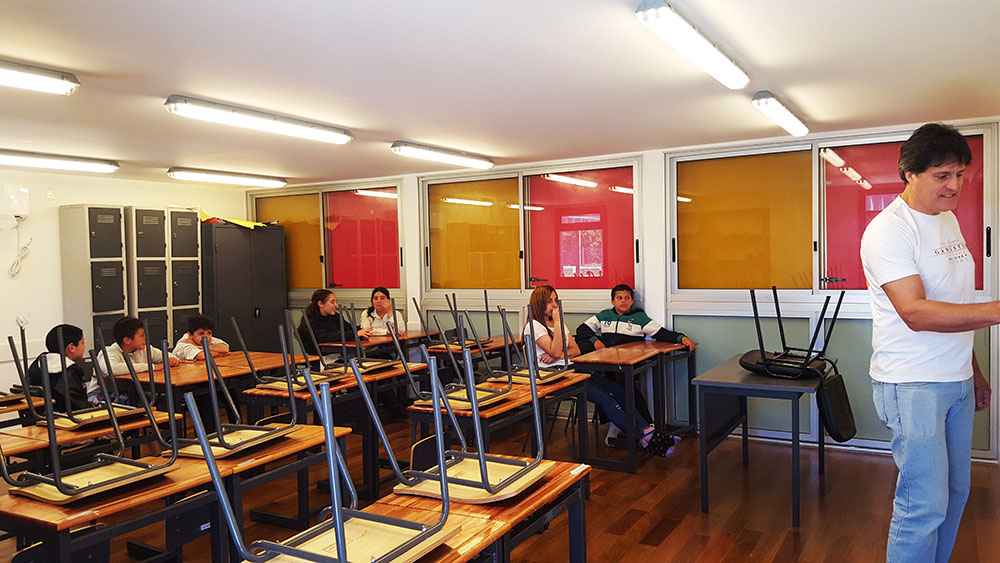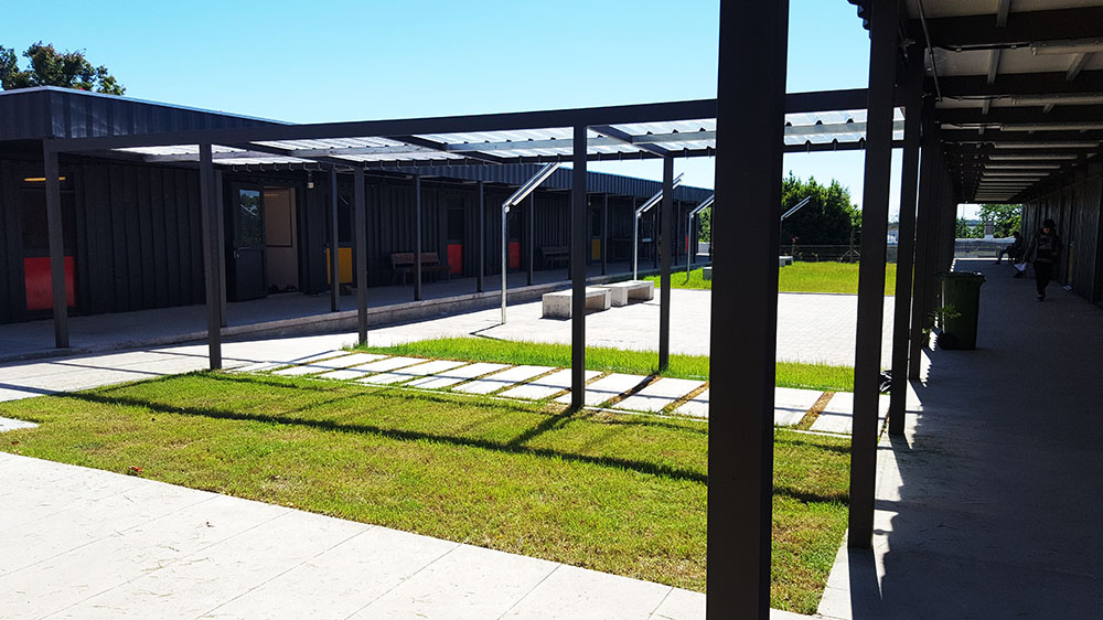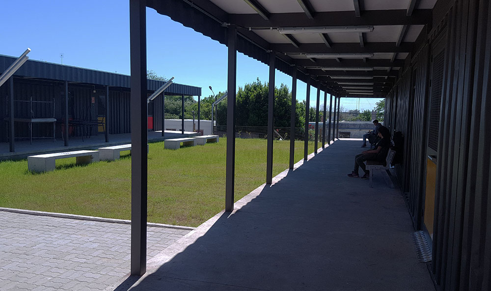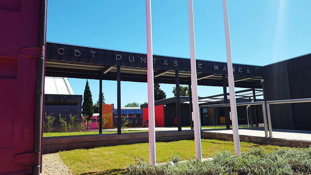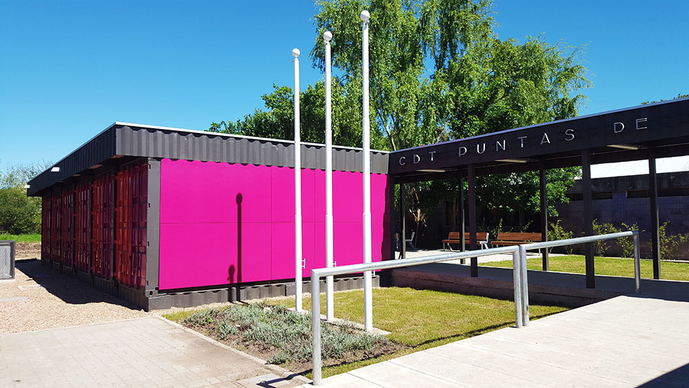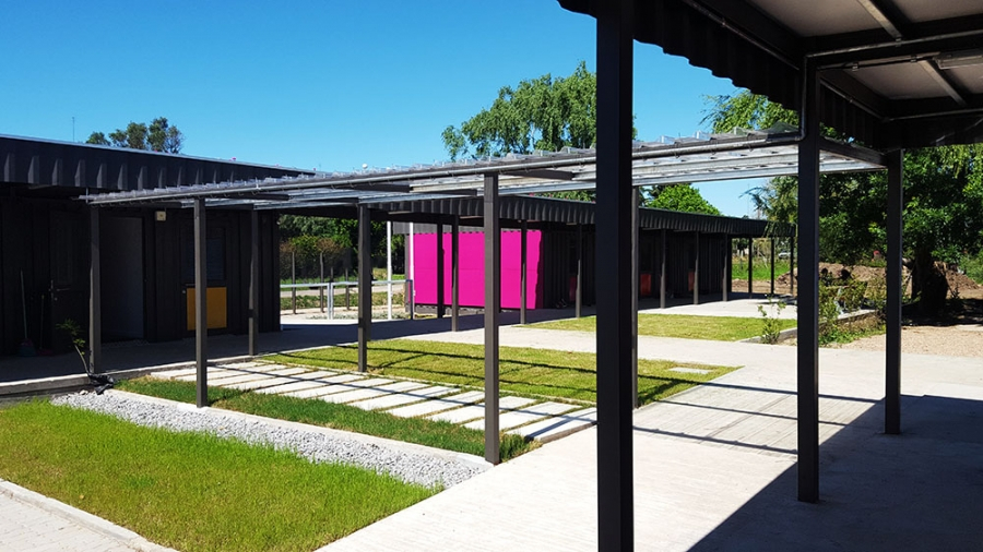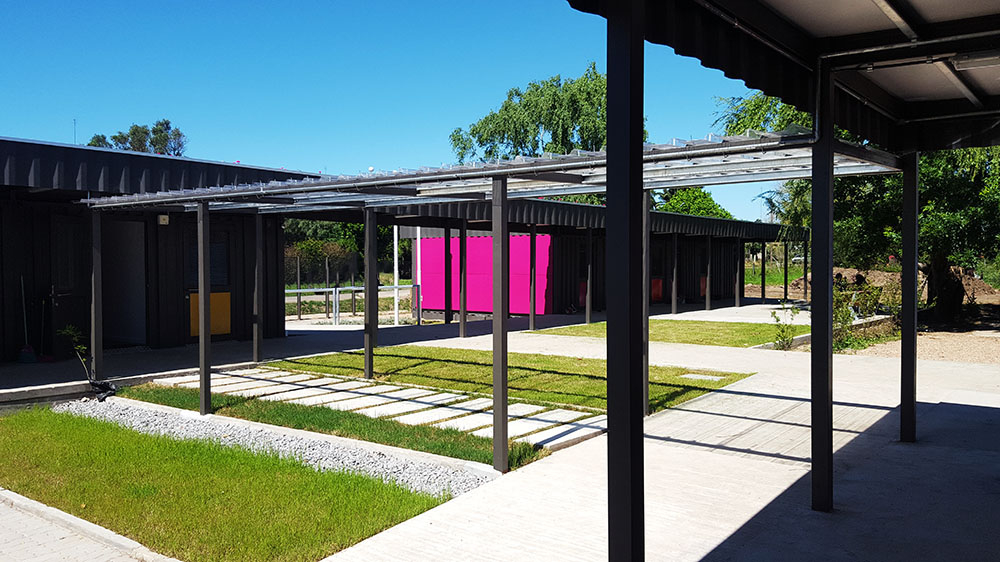 Se trata de un centro educativo realizado bajo el sistema en base modular. Este sistema constructivo consiste en el agrupamiento y transformación de contenedores marítimos para su reutilización como espacios educativos.